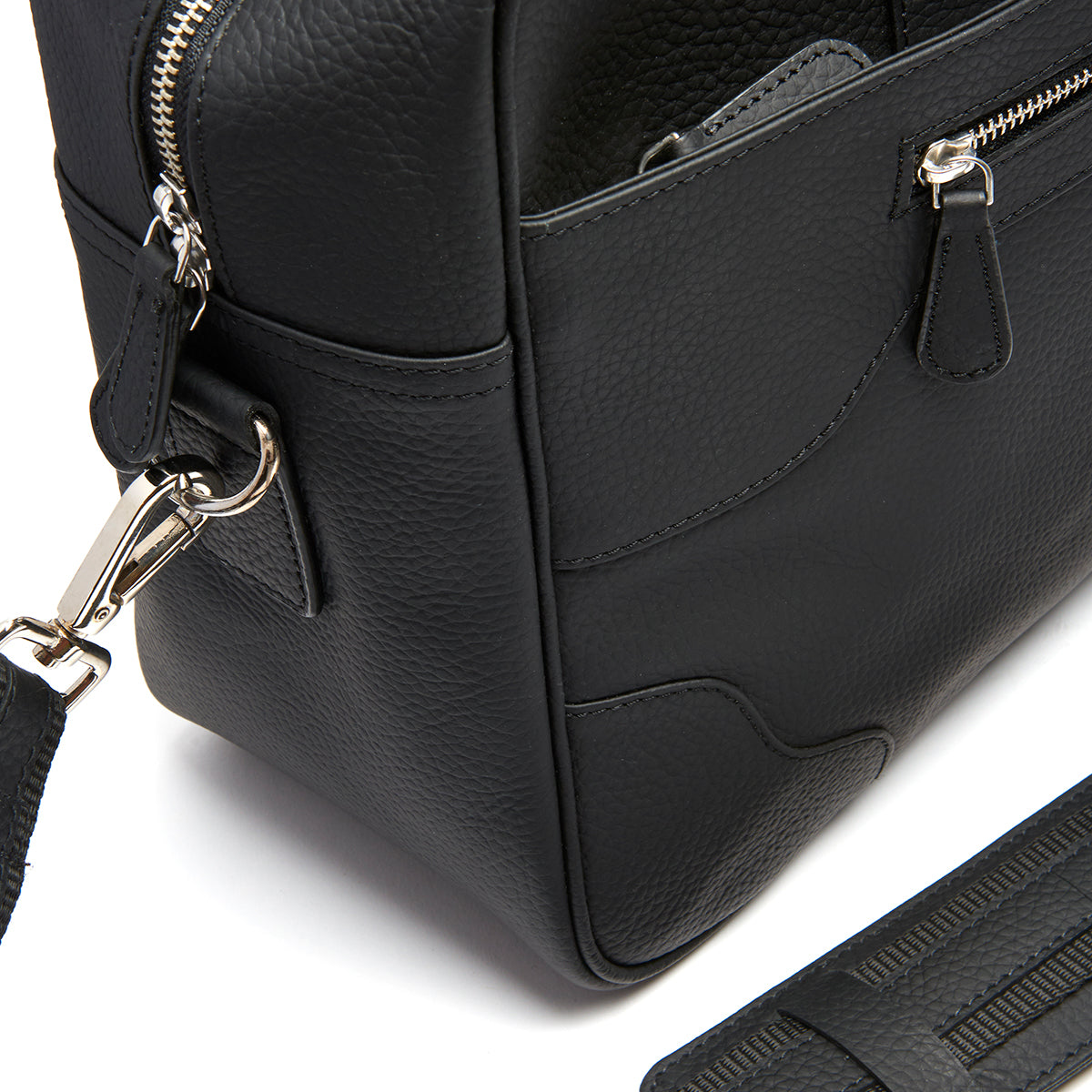 Our leather Travel Bag is a great companion for trips or the commute to the office. Combining the professionalism of a briefcase with the versatility of a crossbody bag, the Travel Bag is an everyday carrier crafted in Black Greasy Grain leather.